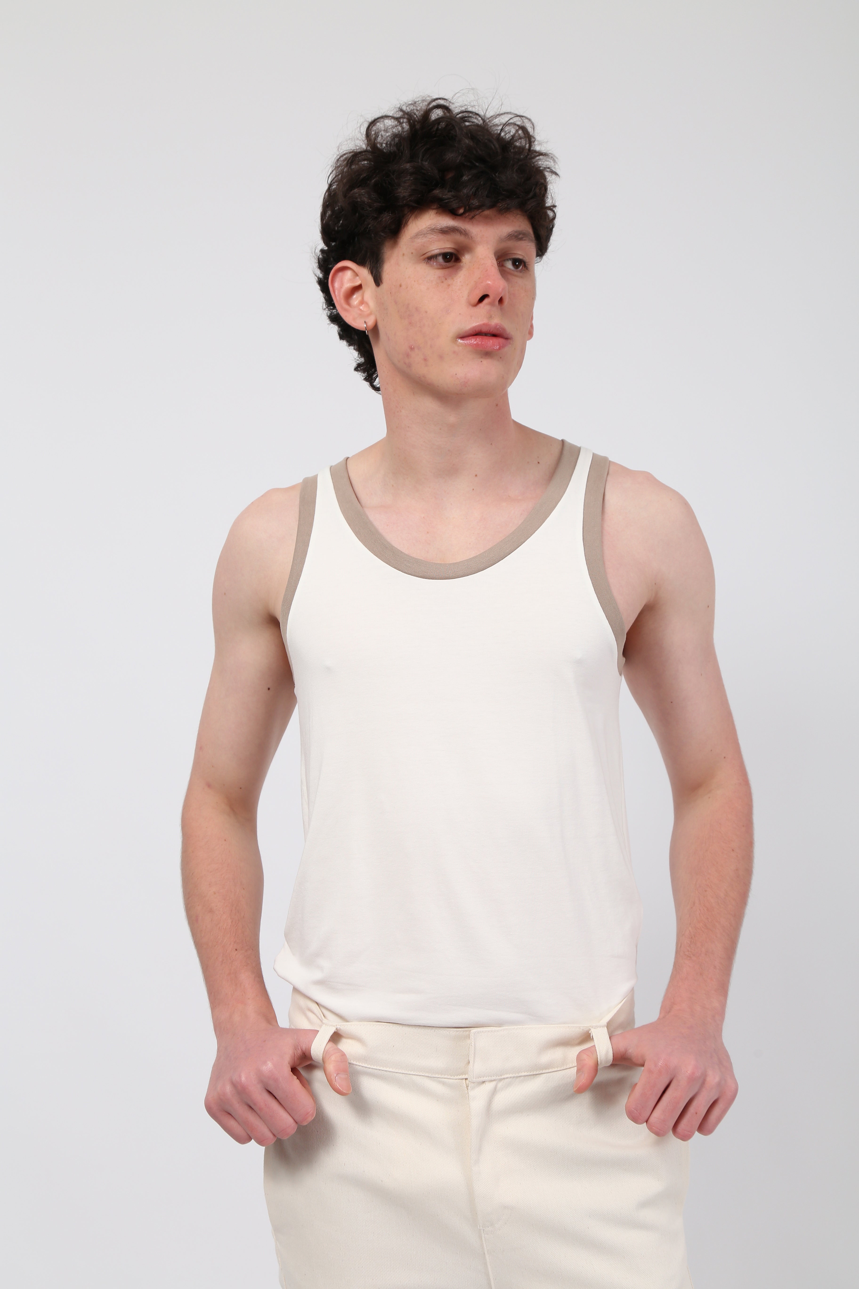 A regata da Openstudio é uma base ideal para camisas, suéteres ou jaquetas. Ela é cortada para um ajuste perfeito e confortável, detalhe para o viés que é um charme. Combine com Calça Sarja Cargo OffCargo Vegan Leather Oliva ou com o ShortsShorts Belt Tech.
