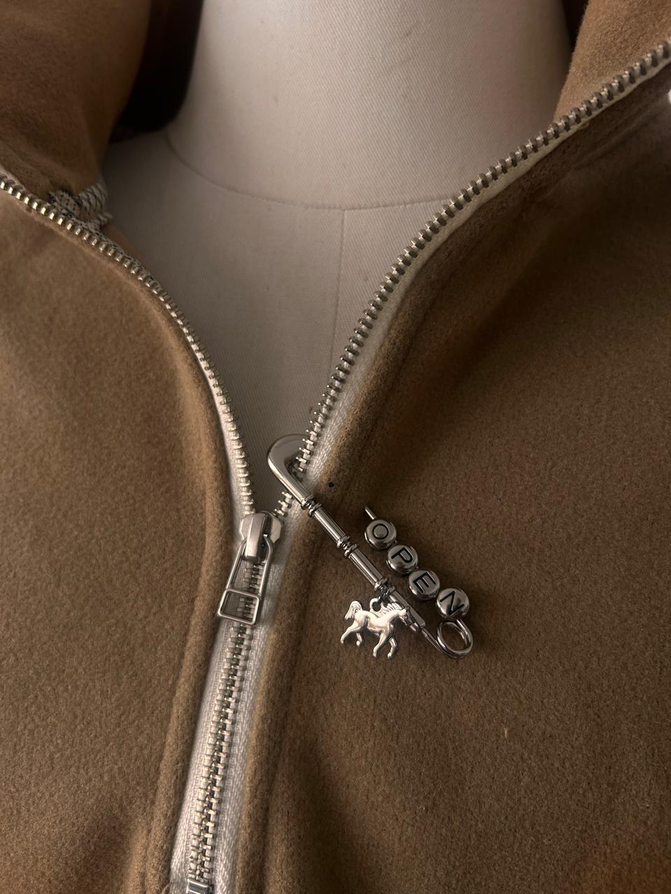 Um alfinete de segurança em proporções over, pensado para vestir, prender e marcar.